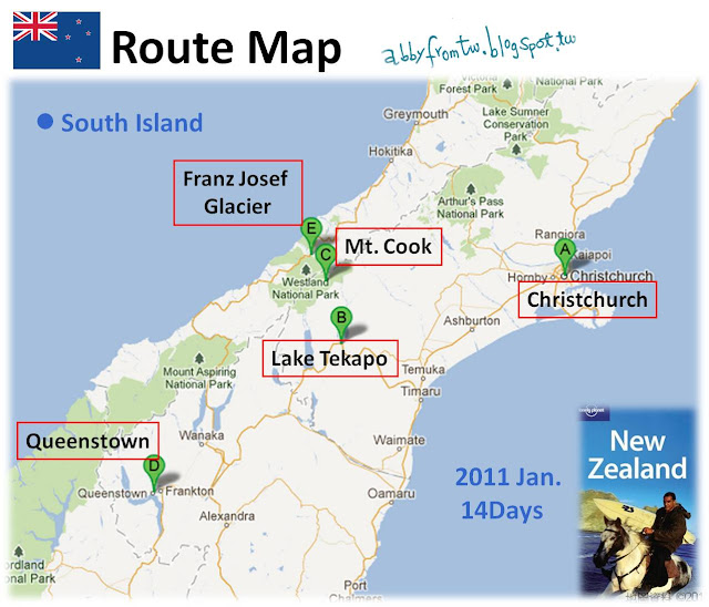 主要去這幾個:Christchurch / Lake Tekapo / Queenstown / Franz Josef